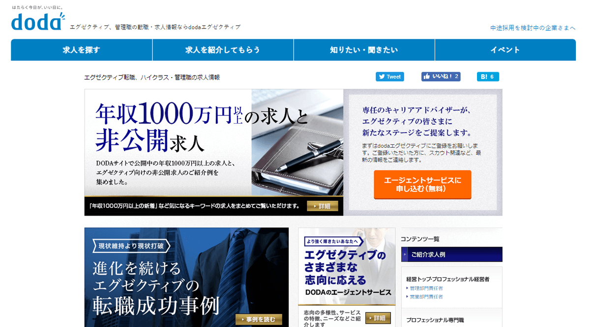 dodaエグゼクティブ。年収1000万円以上の求人と非公開求人