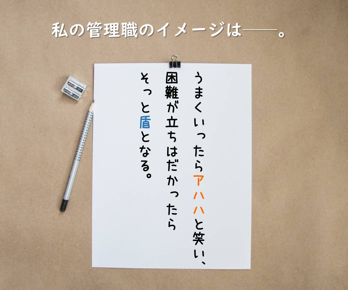 私にとって「管理職」とは、一言で言えば「抱える業務が上手くいけばアハハと笑い、困難が立ちはだかればそっと盾になる」───そんな存在だと思って...